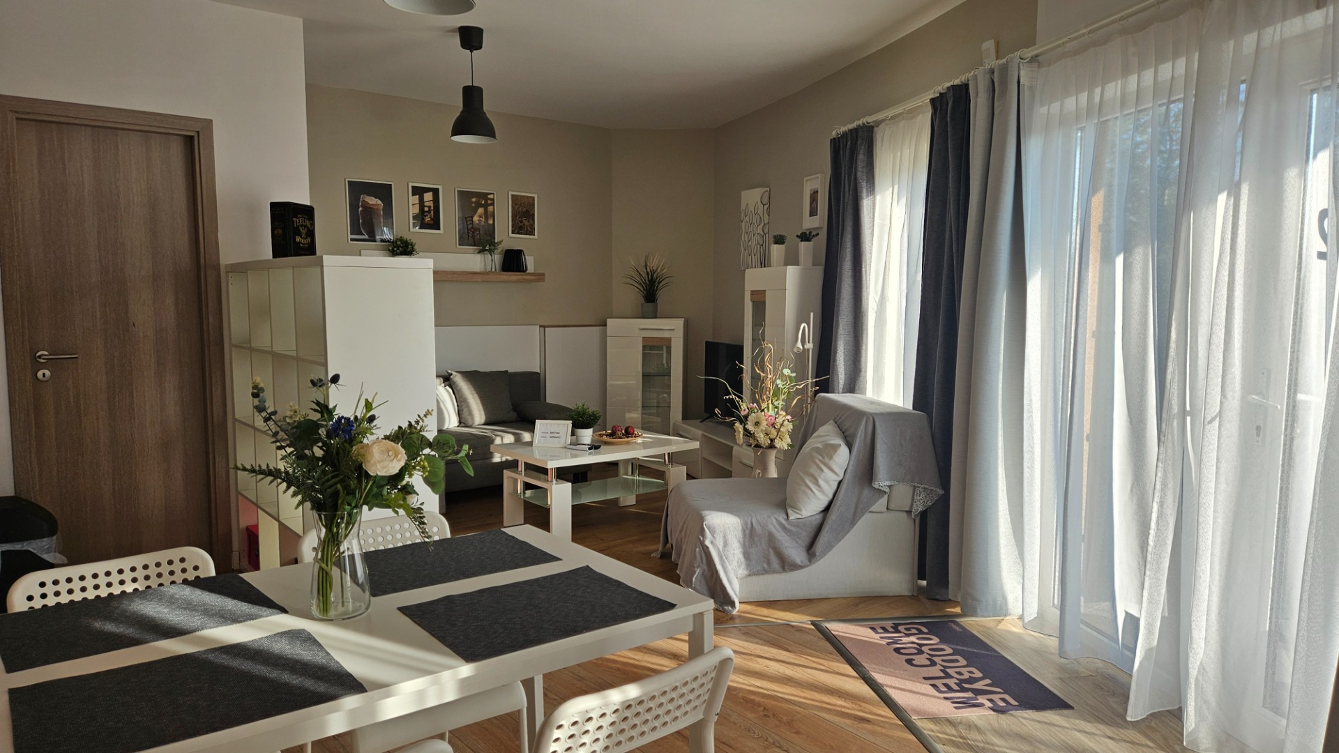 Praktikusan berendezett, hangulatos, kényelmes és tágas 2 + 2 fő részére, az Északi Strand kb. 8 perc, a Korzótól 20 perc kényelmes sétára található a 2025-ben felújított stúdió jellegű 50m2-es apartman. A nappalival egy légtérben található galérián kialakított hálórészre (2fő franciaágy), lépcső vezet fel . A nappaliban 2 fő részére kihúzható kanapén történő elhelyezés biztosított. Pihenés a kertben, zöld környezetben.